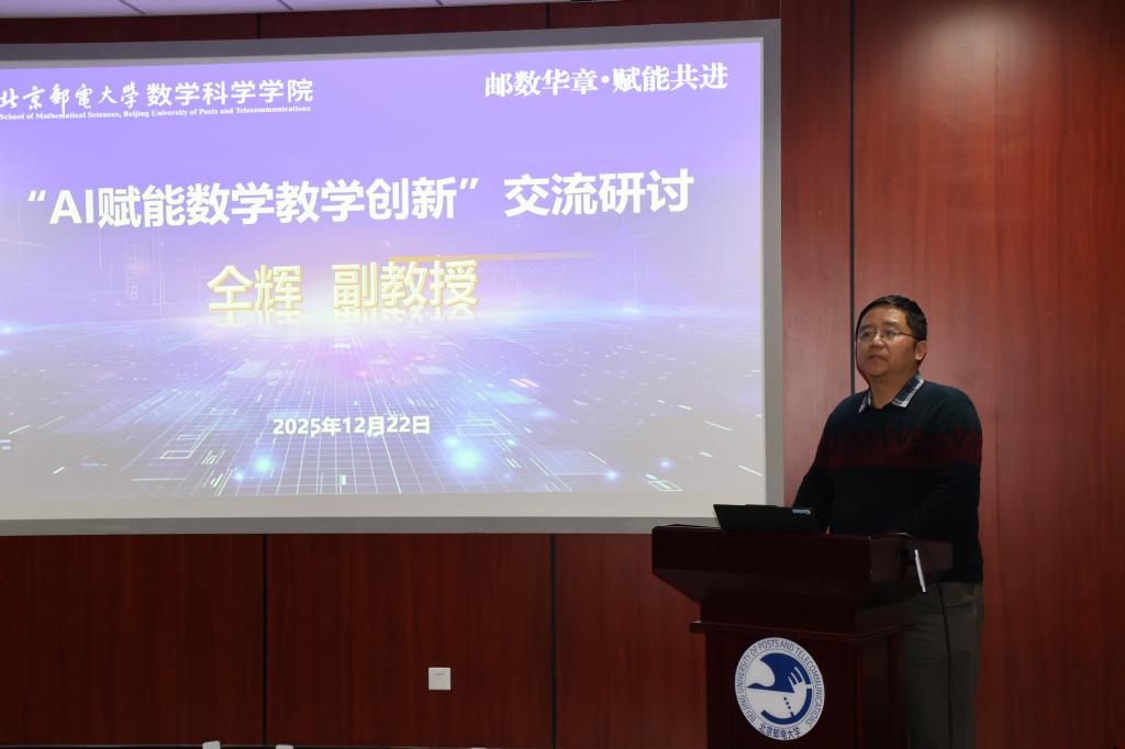 2025年12月22日下午,数学科学学院教师发展分中心在沙河校区理学楼302报告厅举办“邮数华章·赋能共进”教师全面发展赋能计划之“AI赋能数学教学创新”第二期交流研讨活动。学院副院长(主持工作)刘亚锋教授及30余名青年骨干教师参与本次活动。会议由学院副院长、教师发展分中心副主任袁健华教授主持。仝辉副教授以“AI赋能数学教学”为主线,系统分享在教学改革、资源整合、实践育人、思政融合及创新创业等方面的探索成果与实...