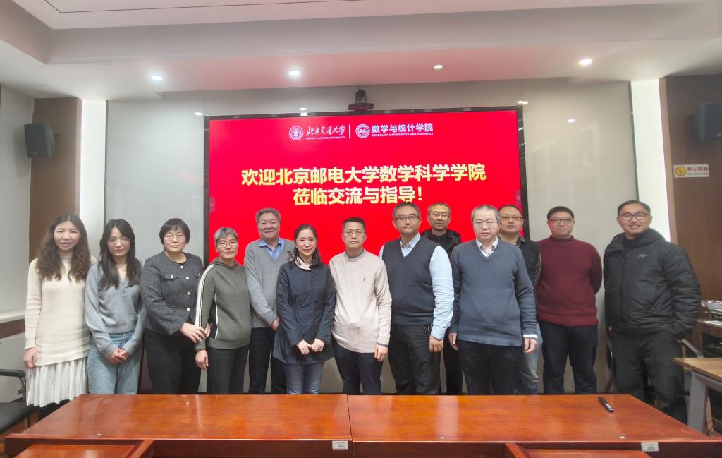 2025年1月9日下午,北京邮电大学数学科学学院副院长袁健华、应用数学系主任兼信息与计算科学专业负责人朱萍、大学数学竞赛负责人胡细宝、数学与信息科技科普实验室主任李鹤、概率与统计系副主任徐文哲、教学办主任闫晶晶一行6人,赴北京交通大学数学与统计学院开展调研交流活动。北京交通大学数学与统计学院领导班子、各实验室负责人、专业负责人及课程负责人出席会议。交流会上,北京交通大学数学与统计学院党委书记王烜主持会...