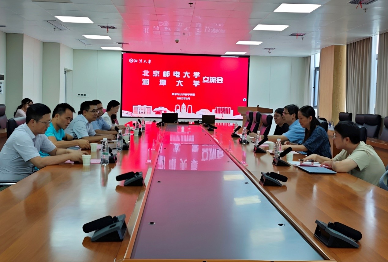 9月12日下午,调研团队赴湘潭大学开展交流活动。数学与计算科学学院党委书记张普、副院长易年余、袁海专、张娟,以及统计学系主任韩国胜等参与交流活动。张普书记对北邮数学科学学院的来访表示欢迎,并介绍了学院概况。张娟教授分享了教育部重点实验室的评估经验。袁健华副主任介绍了北邮数学科学学院及相关实验室的建设进展。双方一致表示,将进一步加强持续交流,促进经验共享与发展共赢。会后,调研团队专程拜访了我国计算数学领域著名专家黄云清教授。