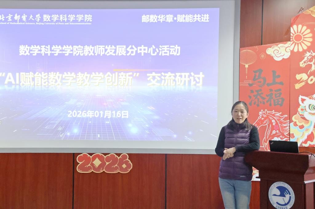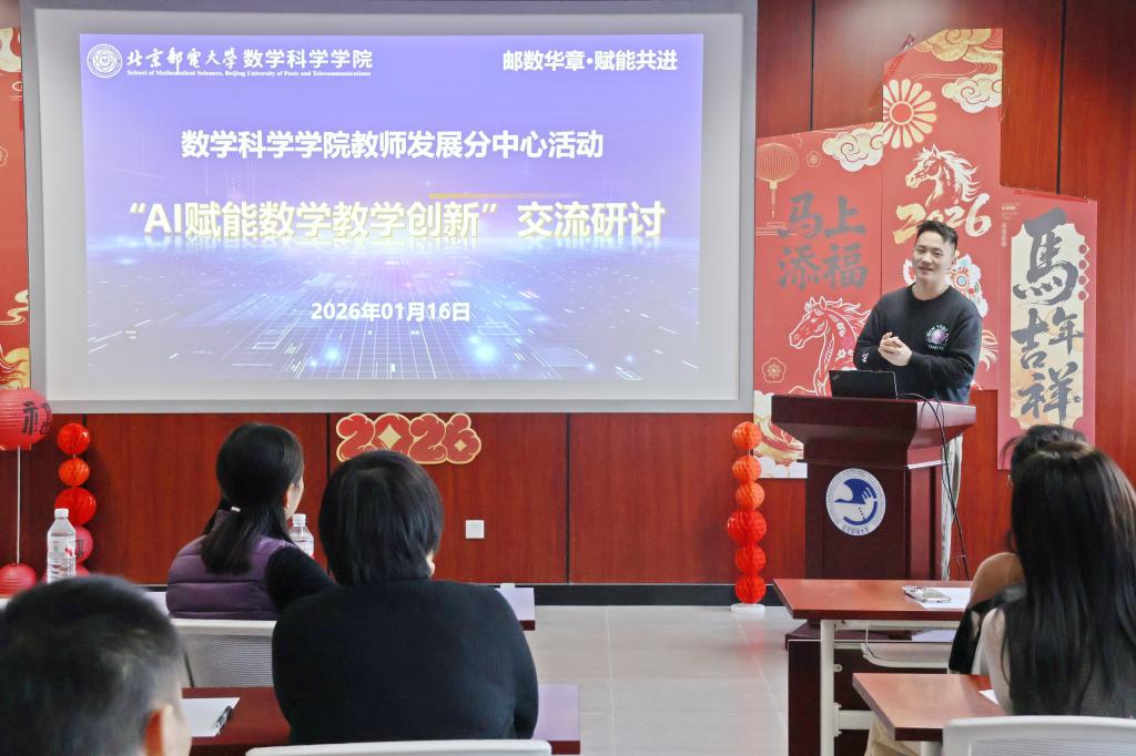 为深化人工智能与数学教育的融合,探索智能技术支持下的教学创新,1月16日上午,数学科学学院教师发展分中心在沙河校区理学楼302报告厅举办“邮数华章·赋能共进”教师全面发展赋能计划之“AI赋能数学教学创新”第五期活动。中国人民大学数学学院党委书记柯媛元教授及“数你最灵”研发团队受邀分享,学院数学基础课程数智化建设骨干教师共同参与研讨。活动由学院副院长袁健华教授主持。