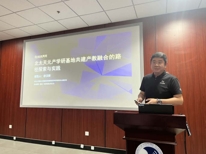 北太振寰公司董事长卢朓在致辞中强调,公司以核心软件国产化为使命,致力于为国家科技创新提供“北太方案”。他介绍了“北太天元”与“北太真元”两大产品线的进展与应用成效,并表示将与北邮深化人才培养、科研攻关与成果转化合作,共建国产软件新生态。