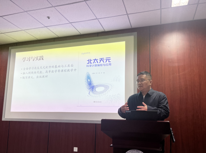 仪式由副院长黄际政主持。副院长刘亚锋在致辞中指出,“北太天元”作为我国自主可控的科学计算与系统仿真平台,成功突破了国外长期技术垄断,解决了关键领域“卡脖子”问题。他表示,学院将坚持“问题驱动、需求牵引”,通过课程共建、实践协同、竞赛赋能、平台共享、技术攻坚和方案共创六大建设方向,系统构建“教育链-创新链-产业链”融合生态。