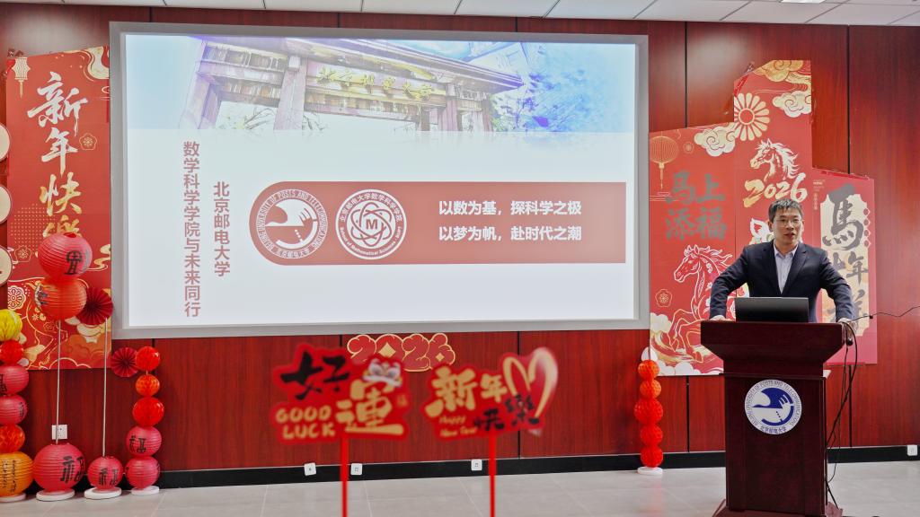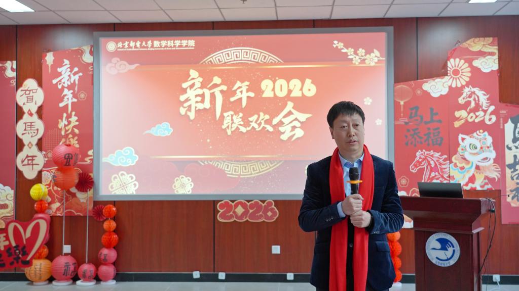 1月15日上午,数学科学学院2025年年终总结会暨2026年新年联欢活动在沙河校区理学楼302报告厅隆重举行。孙洪祥教授应邀出席本次会议,学院领导班子及全体教职工现场参会,海南校区参与教学工作的一线教师通过远程直播云端相聚,全院同仁齐聚一堂,共话发展、喜迎新年。